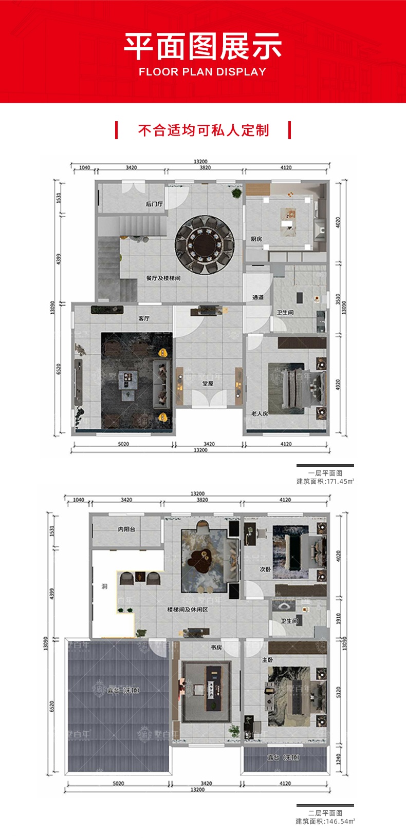 4室2厅1厨2卫1后门厅3露台;占地面积171.45m²;建筑面积317.99m²