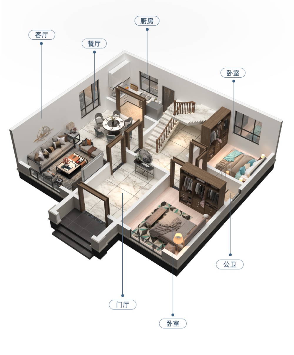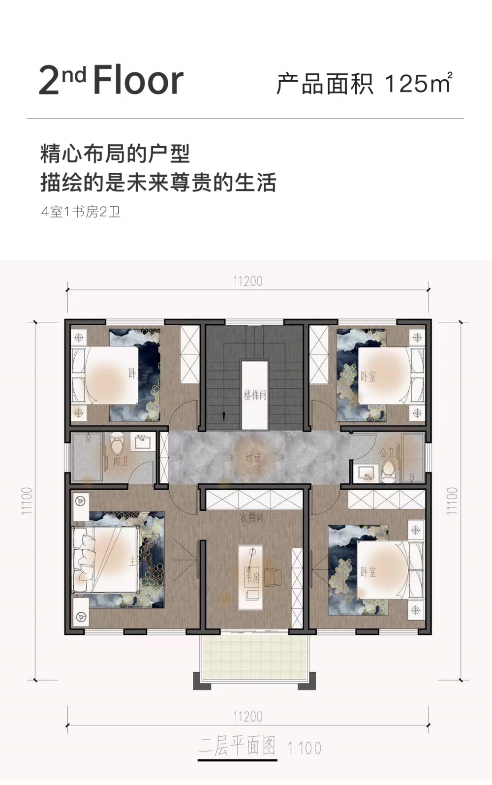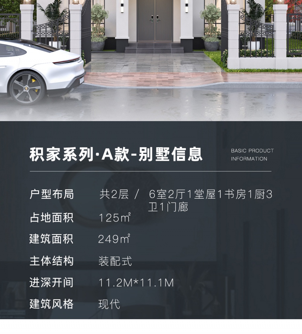 户型:6室2厅1堂屋1书房1厨3卫1门廊;占地面积125m²;建筑面积249m²