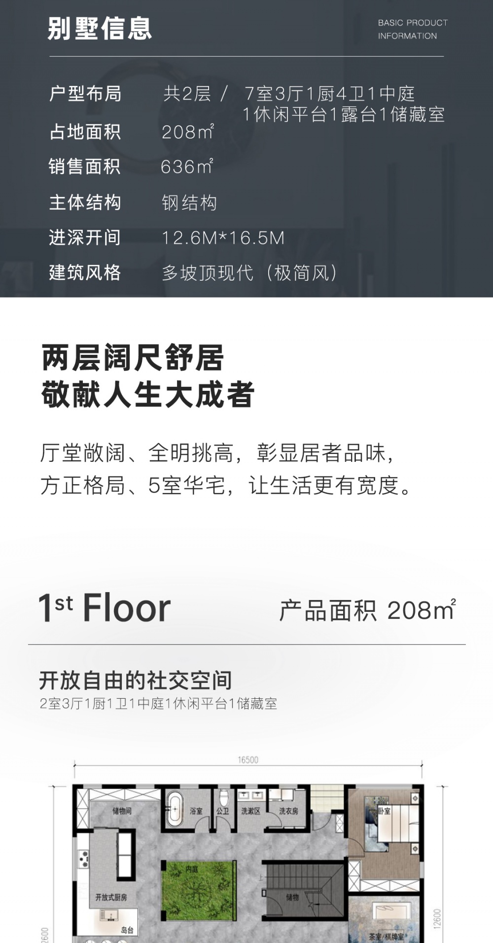 7室3厅1厨4卫1中庭1休闲平台1露台1储藏室;占地面积208m²;建筑面积636m²