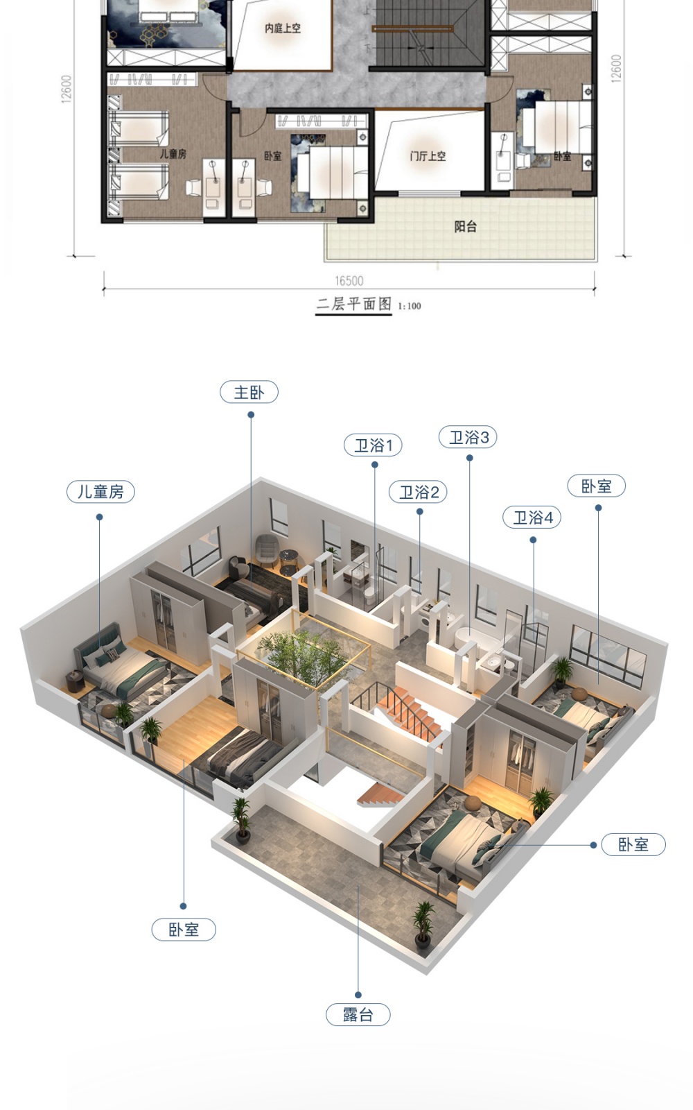6室2厅1厨2卫1阳台2露台1书房,占地面积173.046㎡,建筑面积416.265㎡